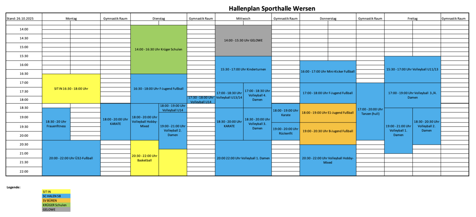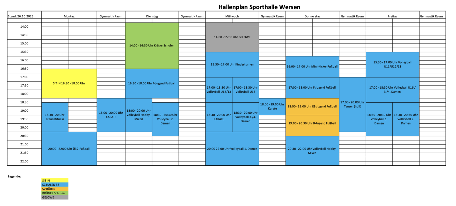 Hallenbelegungsplan Wersen